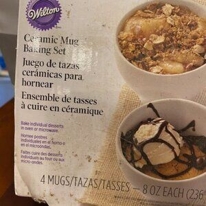 Wilton 4 Piece White Ceramic Mug Baking Set 2105-0172 Brand New Discontinued