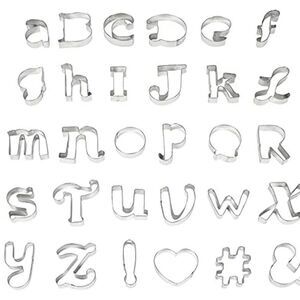 Wilton Alphabet Metal Font Cookie Cutters, 30 Piece set. Speed it out! New in Box. Spell it out in cookies with this quirky metal alphabet cutter set that features 26 letters in a fun font, plus an exclamation point, ampersand, heart and hashtag. Spell out names and phrases and have fun. They're also great for cutting fondant, sandwiches, brownies and more. Approx. 2.5 in. tall. Made of Tinplate Steel. Questions? Please leave a comment below!
