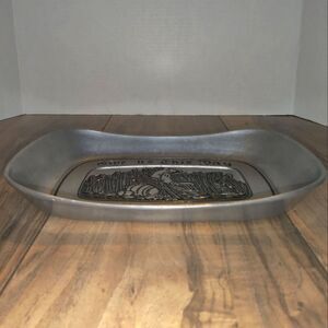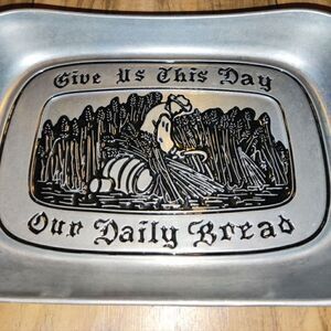 Wilton Armetale Pewter Tray GIVE US THIS DAY OUR DAILY BREAD. Has some wear from age and storage. Sold as is.