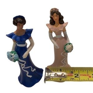 So sweet. These are brunette bridesmaids. Preowned Blue one has the bottom missing from it snd the pink one has some yellowing on bottom of figurine. Both will still work fine on a cake. See all pics.