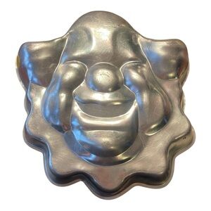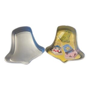 This vintage Wilton cake pan set from the 1970s features a unique design of Happy Birthday bowling pins, pumpkin, clown, 2-bells, and ring pan. Aluminum cake pans are easy cleaning and rust-resistant properties. Perfect for cake baking and decorating, this original set from Wilton is a collectible item for any kitchen enthusiast or franchise collector. The pan is heat-resistant and suitable for use in electric, gas, and convection ovens.