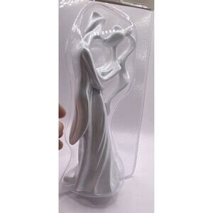The Wilton 6.25" Shimmer White First Kiss Wedding Cake Topper is a romantic and elegant addition to any bride and groom's wedding cake. The couple embracing design adds a touch of tenderness to the special day, making it a perfect choice for lovers celebrating their first kiss as husband and wife. The shimmer white color and small size make it a subtle yet meaningful ornament for the wedding cake, capturing the essence of love and joy in the perfect moment.
