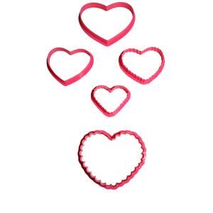 Wilton Cookie Cutters Pink Hearts Plastic Set of Five Smooth and Scalloped