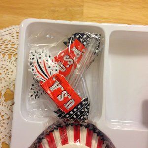 ***Please note: these came with sprinkles but they are out of date so I removed them. You get enough baking cups and patriotic flags for 96 cupcakes. Each box has 24 of each. These are new, from 2016. Very festive for parties on Labor Day, Fourth of July, Memorial Day or Veteran's Day. Would also work for a welcome home party for someone coming back from armed services.