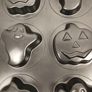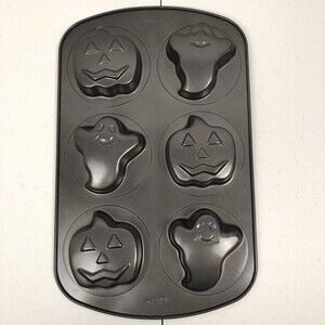 Wilton Halloween Ghosts & Pumpkins Non-Stick Mini Cake Cup Cake Muffin Brownie Pan Jello Mold Measures approx. 16.5" x 10.25" Like new condition