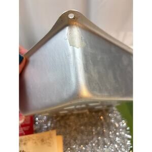 1982 Wilton Holiday House Kit silver aluminum cake pan with original packaging, full directions for decorating and recipes. It can be used to make a gingerbread house, a country cottage house or even a sweetheart house for Valentine's Day. The pan can also be hung and used as decor.