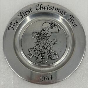 Wilton Pewter Plate The First Christmas Tree Vintage 1984 Wall Hanger 7.5 Inch