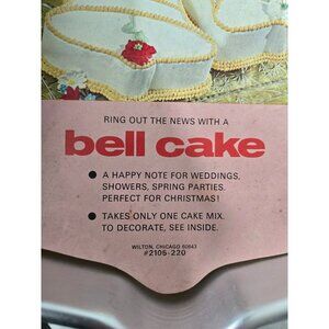 Enjoy the vintage charm of the Wilton Sugar Plum Fairy Bell Cake Pan. This set of 2, made in 1971, is perfect for Christmas and weddings. Crafted from durable aluminum, the silver pans are bell-shaped and measure 9 in X 9 in.