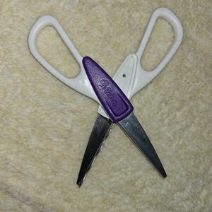 Wilton decorative scissors, thinks you can use for likely the Scallop Cut, Waves Cut, or Zig Zag Cut model. These scissors are used for adding decorative edges to materials like paper, fabric, and fondant. They can also be used for making confetti or shredding paper.