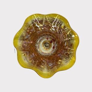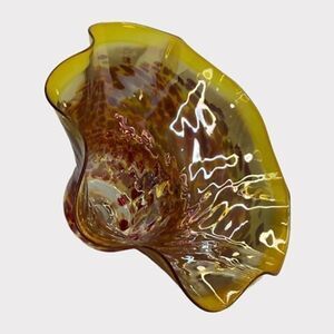 Wimberley Glass Works Art Bowl Vase Ruffled Scalloped Edges Amber Red Signed New