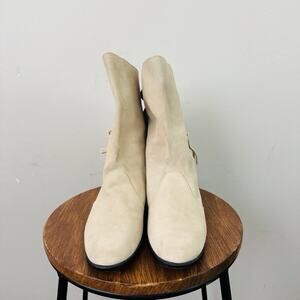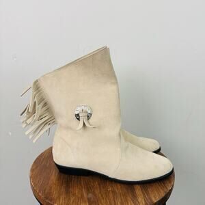 Wimzees White Fringe Suede Ankle Boots Women’s Size 7