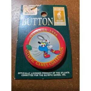 WinCraft 1996 Atlanta Olympics Izzy Tennis 1.5" Button Pin Games Collection