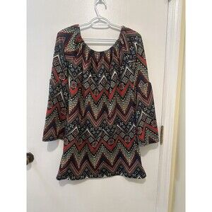 Win-Win Bell Sleeve Off Shoulder Chevron Print Multi Colored Tunic Blouse L/XL