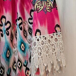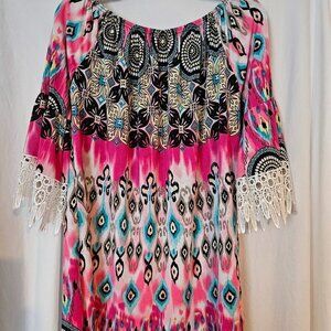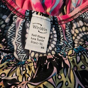 WinWin Tunic Boho Blouse Size XLarge 3/4 Lace Multi-Color Hippie Women's