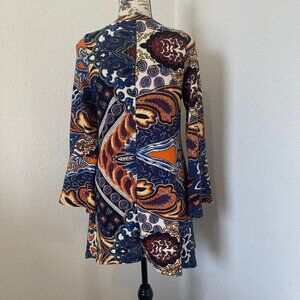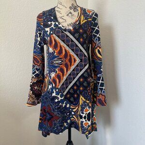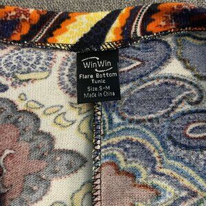 WinWin Womens Flared Tunic Top S-M V Neck Bell Sleeve Asymmetrical Paisley