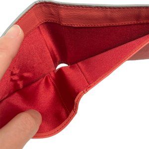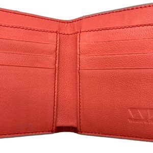 This billfold wallet is crafted from high quality leather. Engraved logo on front. One bill compartment with two slip pockets & 6 credit card slots.