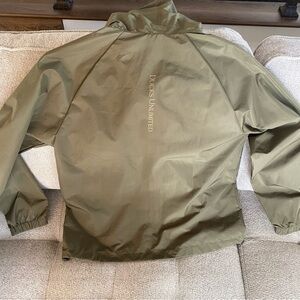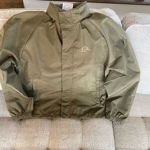 Wind Breaker Athletic Jacket Ducks Unlimited Hood Pockets Khaki M-L