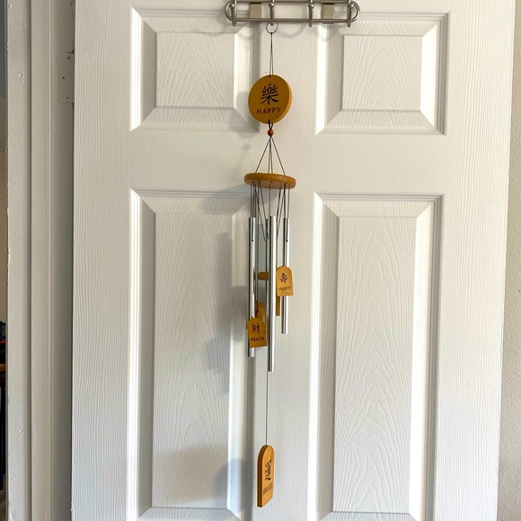 Beautiful wood and metal wind chime. I also have 4 wall hangings listed that matches this! No trades, bundle to save!
