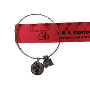✨ Wind & Fire Cross Fleur-De-Lis Bangle | Silver Tone Adjustable USA Charm