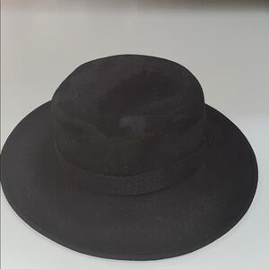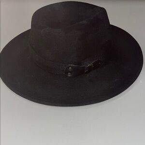 Chic black fedora hat with a sleek design. Perfect for any occasion. In good preowned condition, smoke and pet free home. Great item !