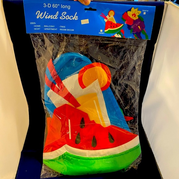 NWT. 3-D Wind Sock. 60” long. Vibrant colors. Watermelon and lemonade design. Can be displayed inside the home; or on a boat, balcony, or tree.