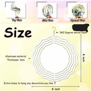 The wind spinner opens up into a 3-D position. Hangs from a 360° swivel hook (included) and creates a beautiful effect as it spins in the wind.
