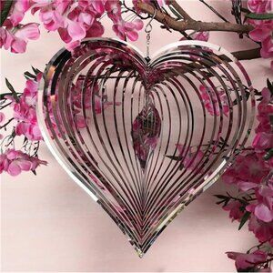 Wind Spinner Outdoor Metal Decorations,Silver Heart Wind Spinners