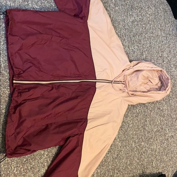 light pink and maroon oversized windbreaker with hood