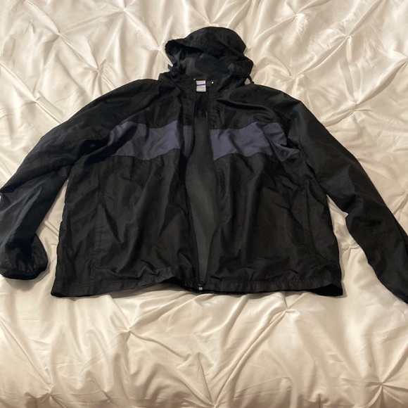 Black and gray raincoat