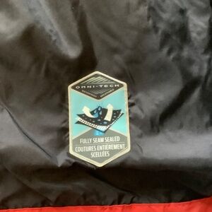 Columbia red and gray size medium windbreaker. Has detachable hood and zippered chest pockets. Drawstring waist, velcro sleeves. Underarm side zippers for ventilation.