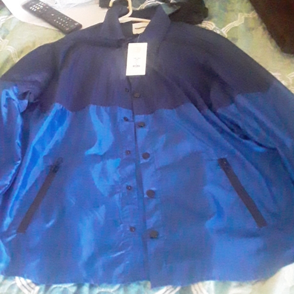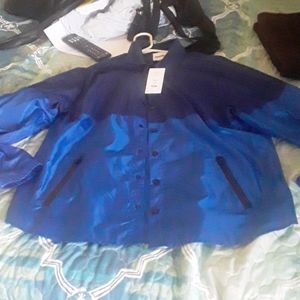 Two tone blue. Idea fir the season. Thin. Rain coat or wind. Size M. Snaps closing. New with tag.