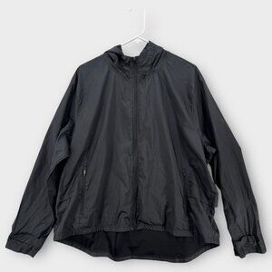 Windbreaker Jacket Mens 2XL Black Hooded Lightweight Packable Y2K