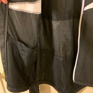 Purchased for cycling. Great windbreaker - super warm. Arms zip off. Lots of pockets. Two outside and two large mesh pockets inside