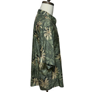 Windham Pointe Shirt Mens Large Green Tan Hawaiian Floral Silk Blend Beachy
