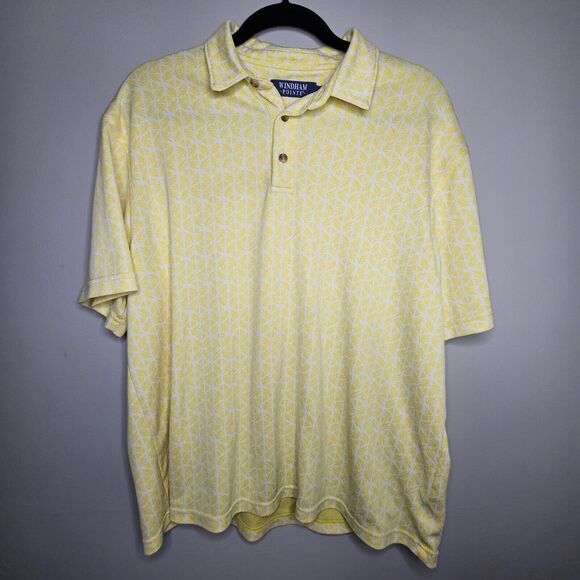 Windham Pointe Shirt Polo Mens XL Yellow Leaf/geometric Pattern Beach Golf