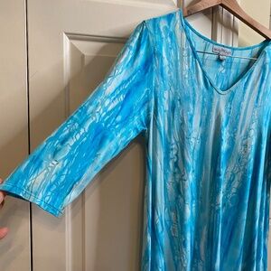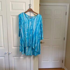 WindiRiver, Small, Aqua and White, Tunic stretch high low, Slits on sleeves