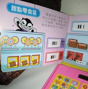 Comes in great condition made fr Taiwan Super Food mart teaches math in fun audiobook & characters. Has money doesn't have credit card is vintage asking 45 Thankyou!