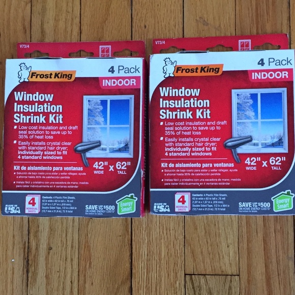 Two packages, unopened window insulation shrink kit draft and seal solution.