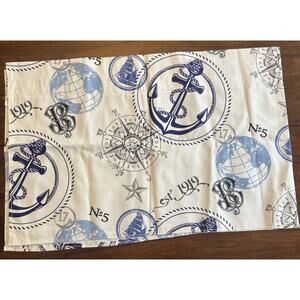 Window Valance Nautical Theme Shades-Blue & Cream, Ocean Beach Vacation Anchor