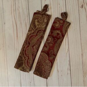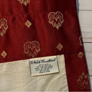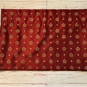 Noble Excellence window drape set. Includes 2 curtain panels, 1 valance, and 2 tie backs. Panels are 50”x84”. Valance is 108”x18”. Has lined backing. Thick heavy fabric. Great for blocking out light. Great quality. Excellent condition. Feel free to make an offer
