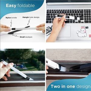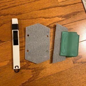 Window track cleaning kit comes with a little brush and tiny dust pan. And two cleaning pads and handle. Great for shower doors also