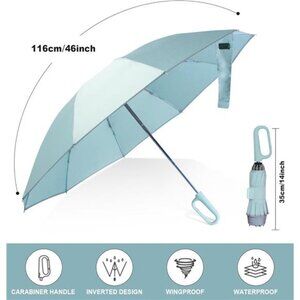 Novel Carabiner Clip Handle: Allows you to clip your strong umbrella to a large variety of places, Backpack, Purse, Luggage, Handbag, Belt Loop, Golf Bag, Stroller, Bicycle, etc which can assist to keep you from losing or misplacing your umbrella!