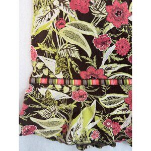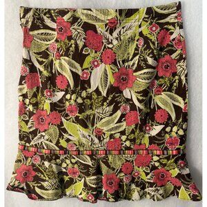 Windridge Floral Ruffle Hem Skirt M Brown Coral Green Floral Print Comfy Feminine