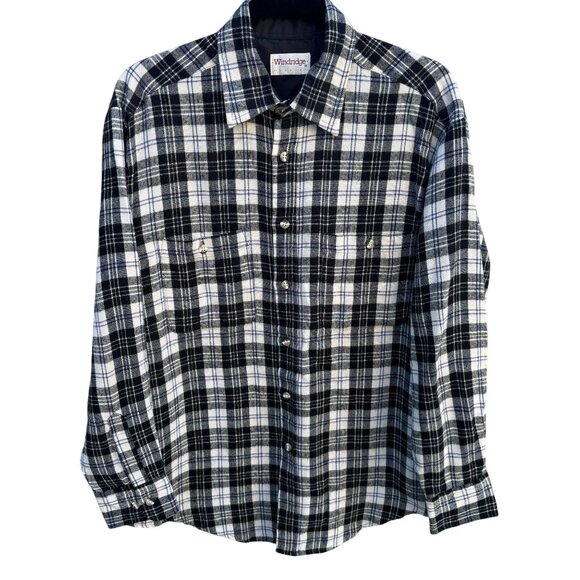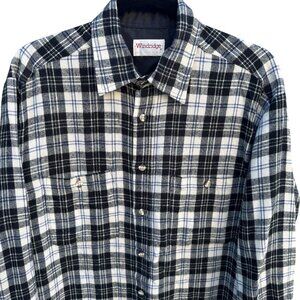 Windridge Mervyns Vintage Plaid Grunge Retro Mens Black White Flannel Shirt M