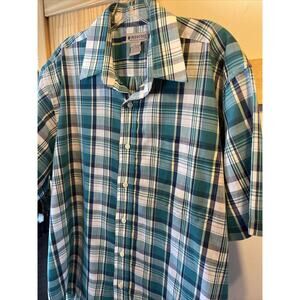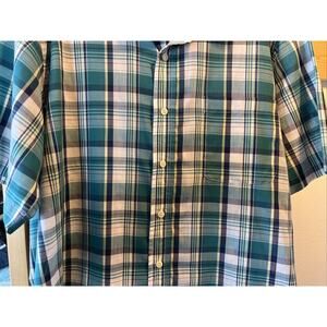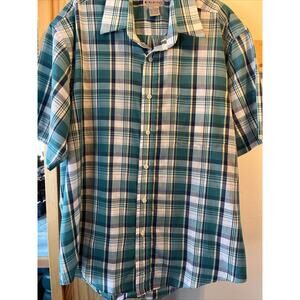 Windridge men’s L Green plaid short sleeve button down polyester blend shirt