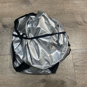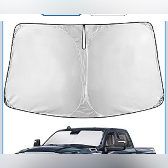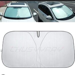 silver windshield sunshade blocks sunlight and lowers interior heat. Lightweight silver material reflects UV rays to protect your dashboard and seats. Simple foldable design for quick installation, helps keep cabin temperatures cooler.