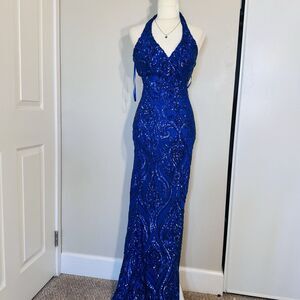 Windsor $119 Maxi V Neck Royal Blue GlitterSparkly Sequin Prom Formal Dress Sz S