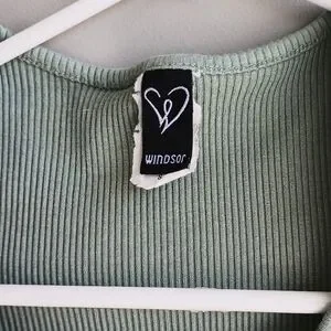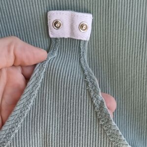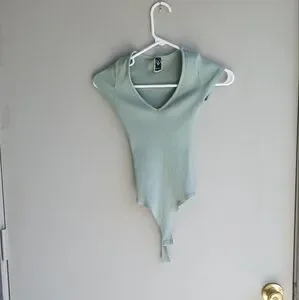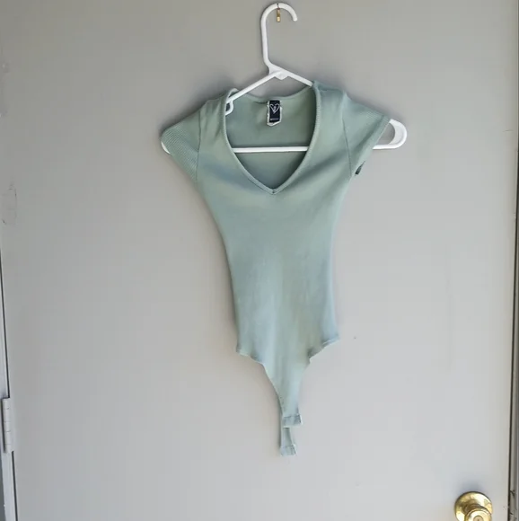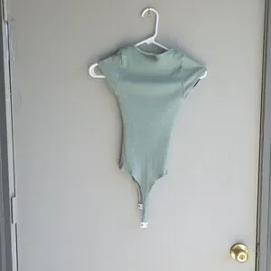 Thong Body Suit Seafoam Green Ribbed Stretchy Capped Sleeves