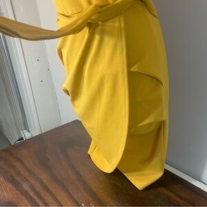Windsor Asymmetrical Knot Wrap Evening Mini Dress Yellow Mustard Small