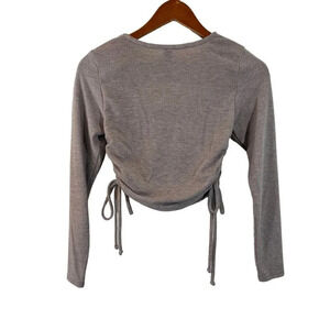 Windsor Beige Cropped Top Size Small Cutout Ruched Sides Stretch Knit Neutral